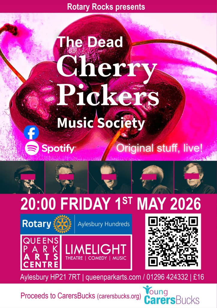 The next gig is on 01 May 2026 featuring The Dead Cherry Pickers Music Society and raising money for Young CarersBucks – for more details see Upcoming Events.